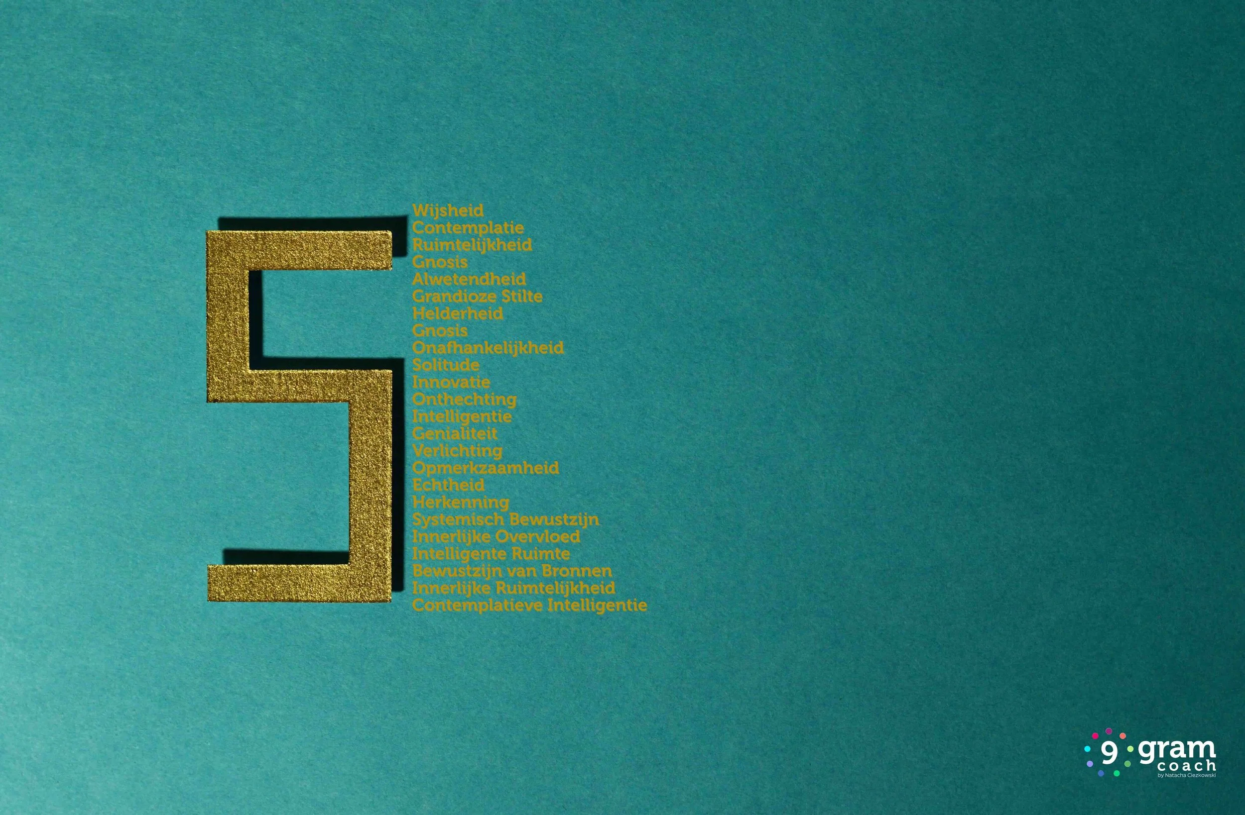 Een andere expressie van het Puur Goud van Vijf is Systemisch Bewustzijn: het vermogen om patronen te herkennen en verbanden te zien die anderen ontgaan. Vanuit deze open nieuwsgierigheid ontstaat Innovatie. Niet omdat je anders wilt zijn. Omdat je dieper kijkt. Omdat je ruimte geeft aan Opmerkzaamheid, die ruimte laat voor Herkenning van Echtheid. Het is een bron van natuurlijke Intelligentie die het fundament is van Genialiteit en Verlichting.