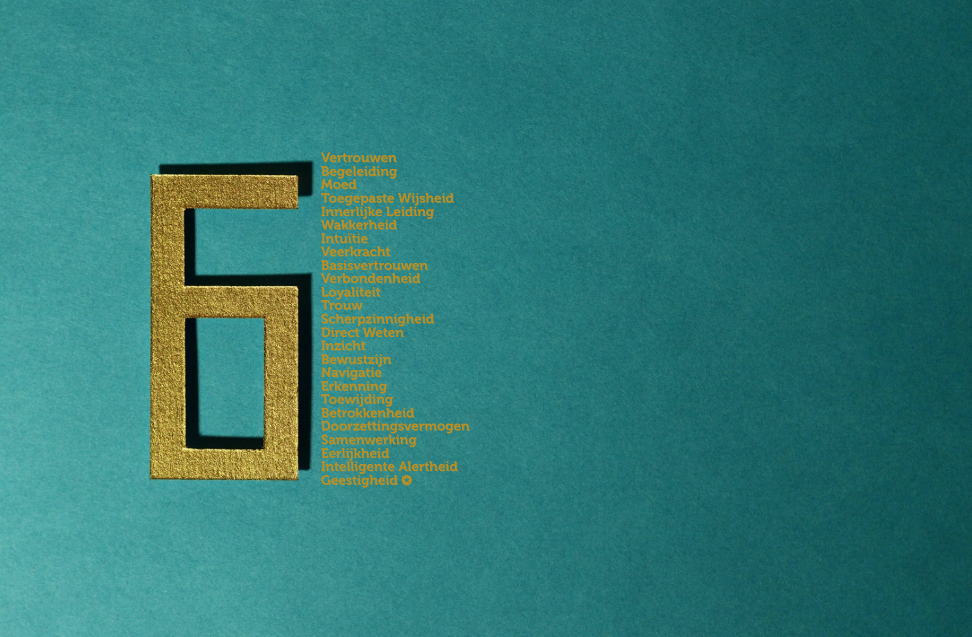 ✪ Vertrouwen ✪ Begeleiding ✪ Moed ✪ Toegepaste Wijsheid ✪ Innerlijke Leiding ✪ Wakkerheid ✪ Intuïtie ✪ Veerkracht ✪ Basisvertrouwen ✪ Verbondenheid ✪ Loyaliteit ✪ Trouw ✪ Scherpzinnigheid ✪ Direct Weten ✪ Inzicht ✪ Bewustzijn ✪ Navigatie ✪ Erkenning ✪ Toewijding ✪ Betrokkenheid ✪ Doorzettingsvermogen ✪ Samenwerking ✪ Eerlijkheid ✪ Intelligente Alertheid ✪ Geestigheid ✪